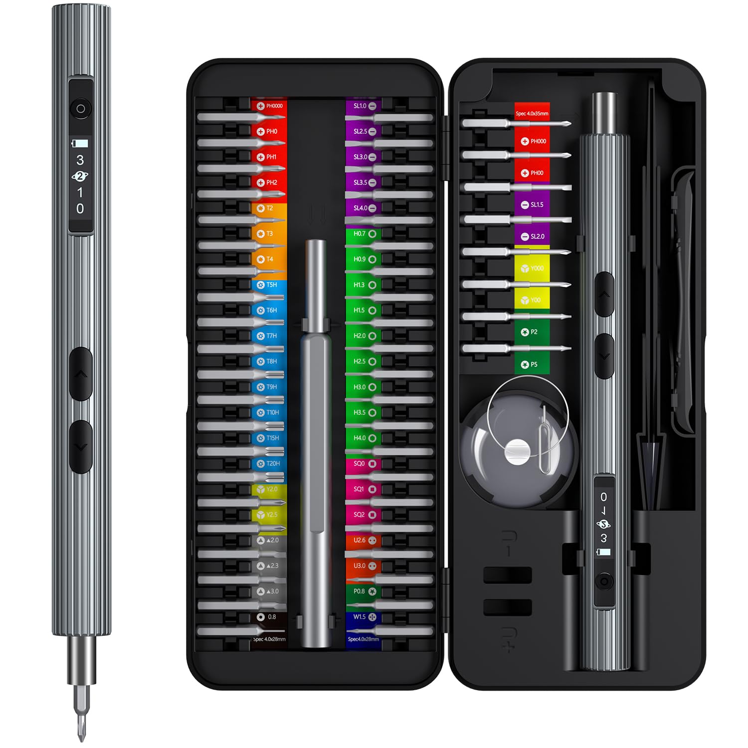 - 【Superb Magnetic Attraction】The electric screwdriver’s magnetic head offers remarkable convenience for both removing and aligning screws within recesses. Notably, we’ve incorporated a magnetic feature allowing users to adjust the strength of the organizer’s magnetic head to suit various maintenance tasks, A good quality tool makes good quality work and significantly enhancing performance and time efficiency.